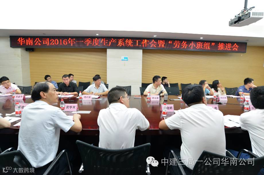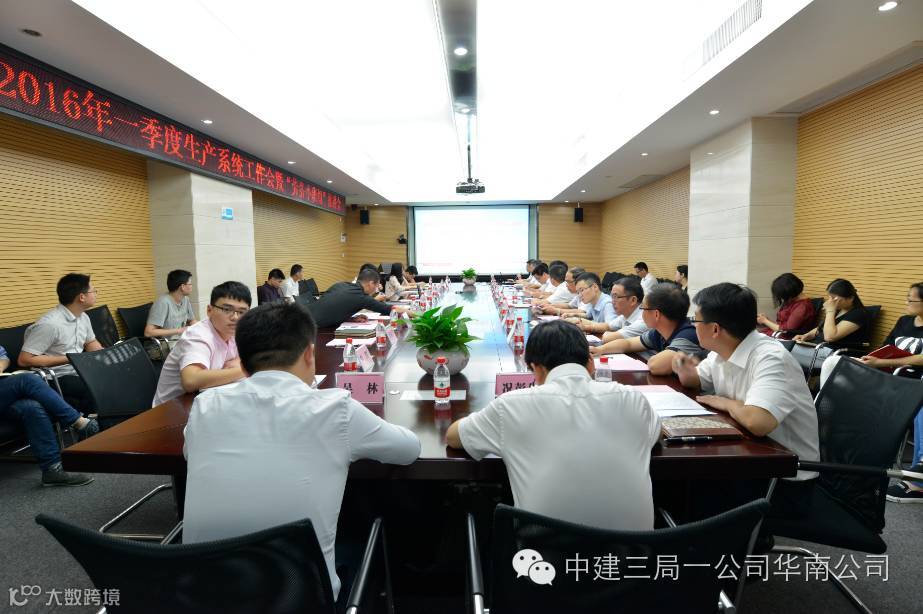 为加强精益建造、促进完美履约, 5月11日,华南公司召开了一季度生产系统工作会暨“劳务专业班组”推进会。华南公司执行总经理王飞、副总经理梁永建、各城市公司分管生产工作的领导及两级机关工程管理部、安环部、物资设备部等部门负责人共计38人参会。
