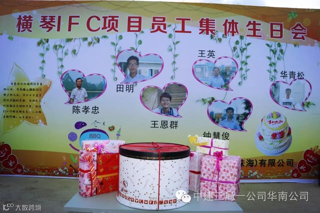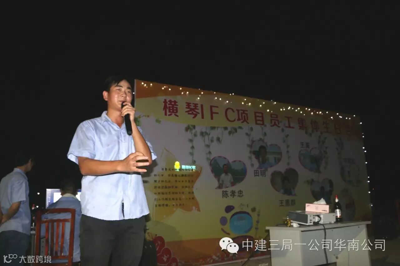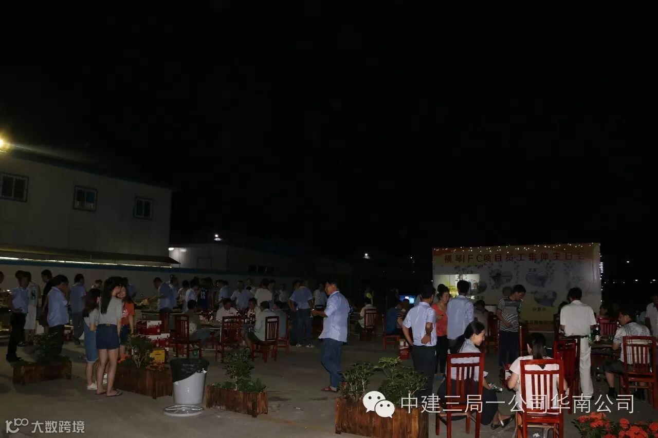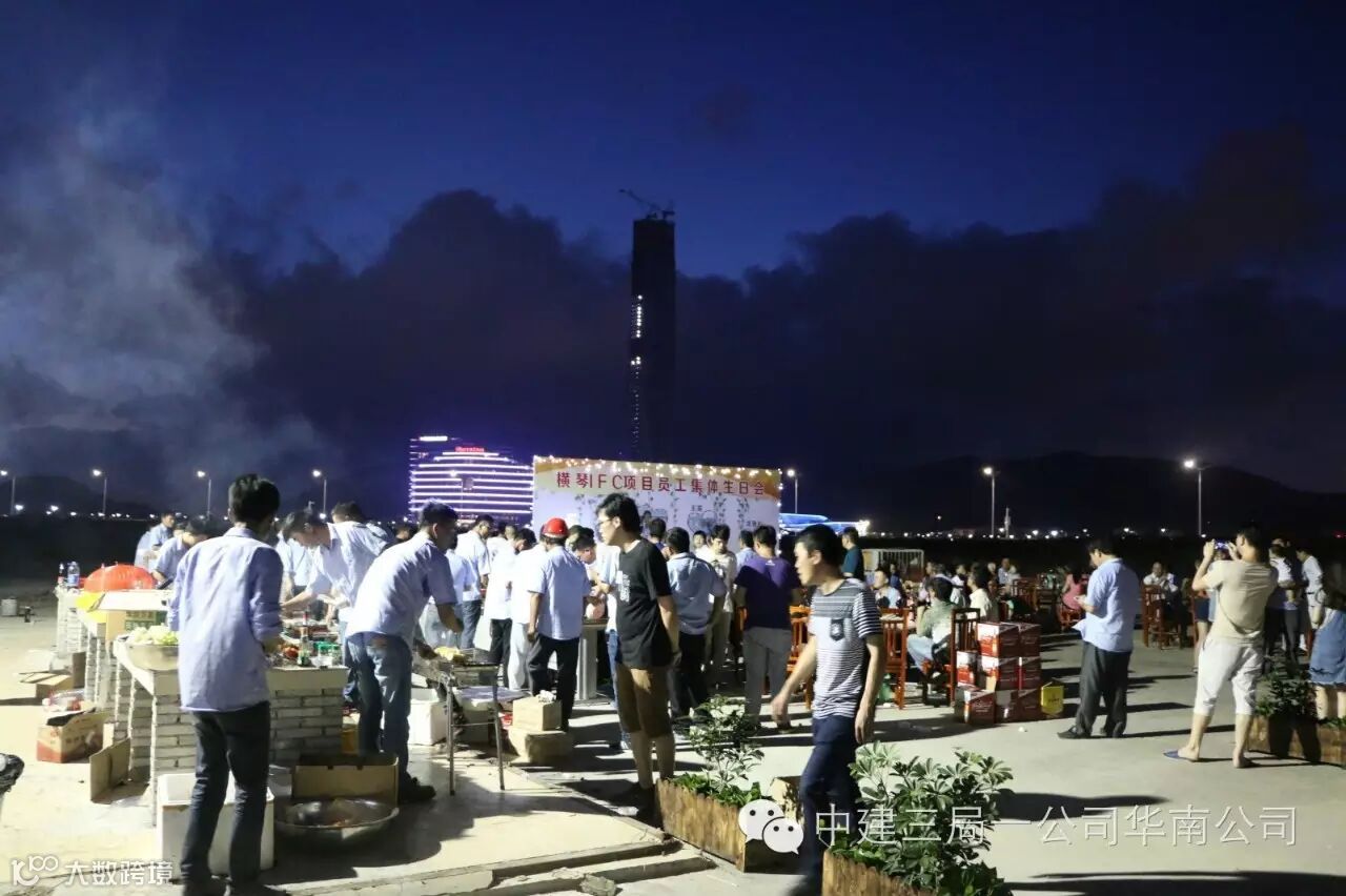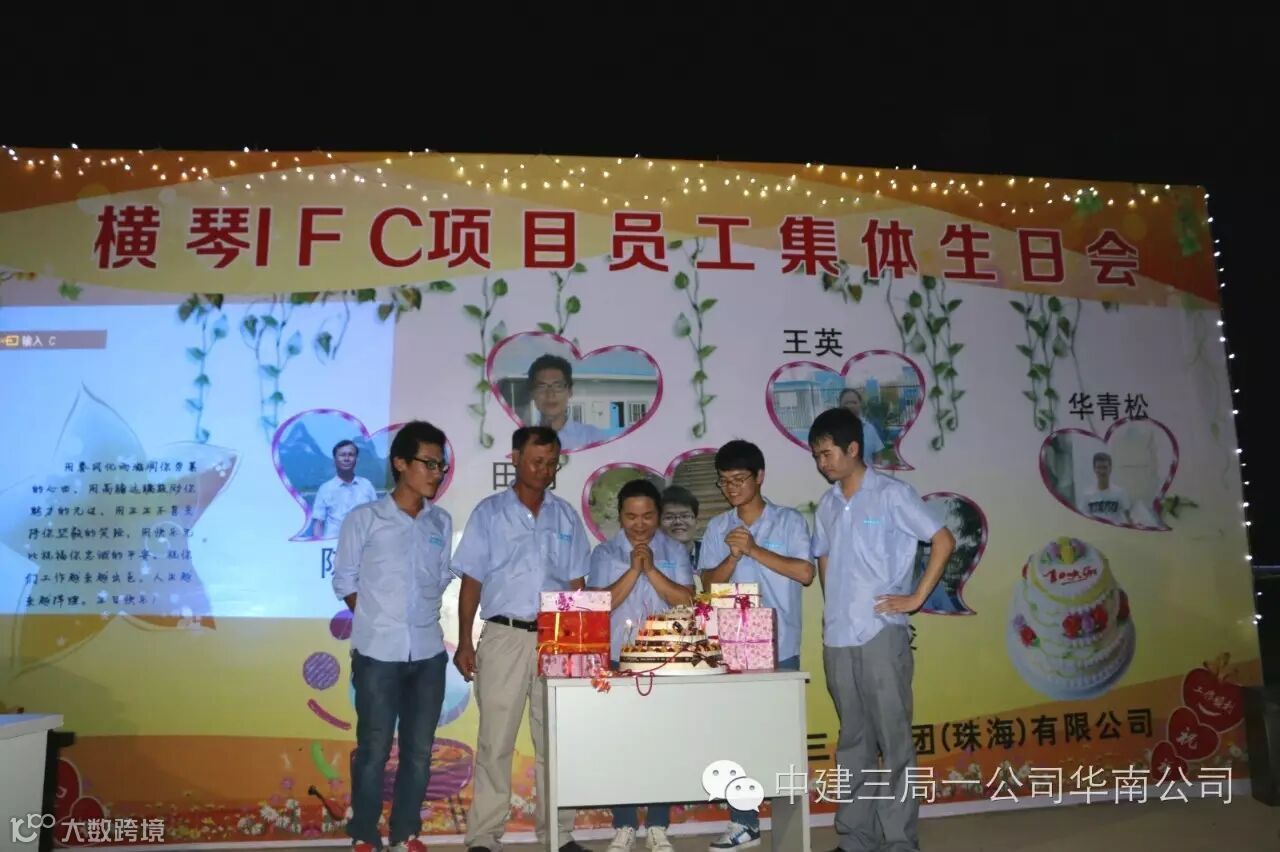 6月3日晚,融合了烧烤、大盆菜、拼盘、露天K歌、集体切蛋糕、露天座谈会等诸多样式的集体生日会正在横琴国际金融中心大厦项目火热举行!项目总包、专业分包、劳务管理员及其家属,以及甲方、监理管理员约一百人参加了集体生日会,同为项目2016年第二季度过生日的6位员工送去生日祝福!