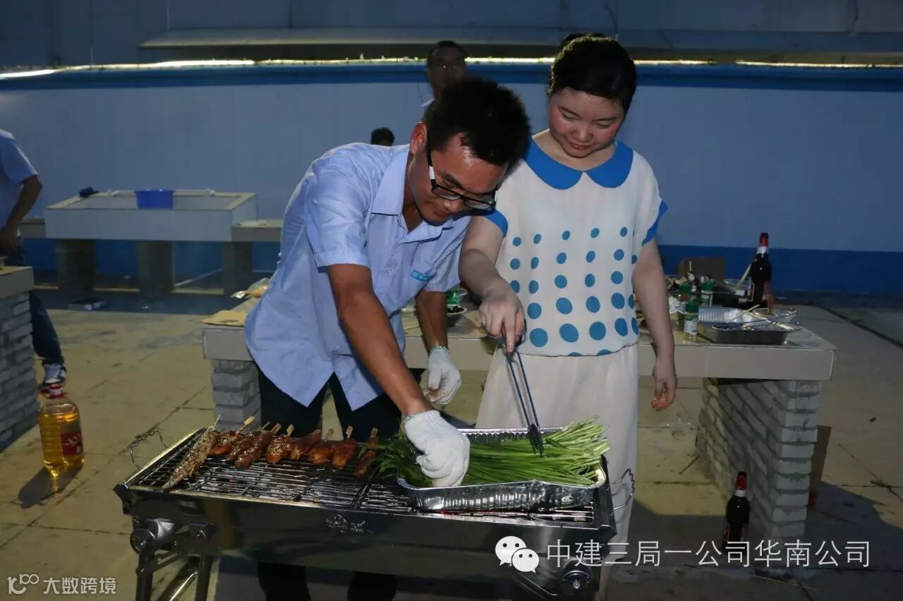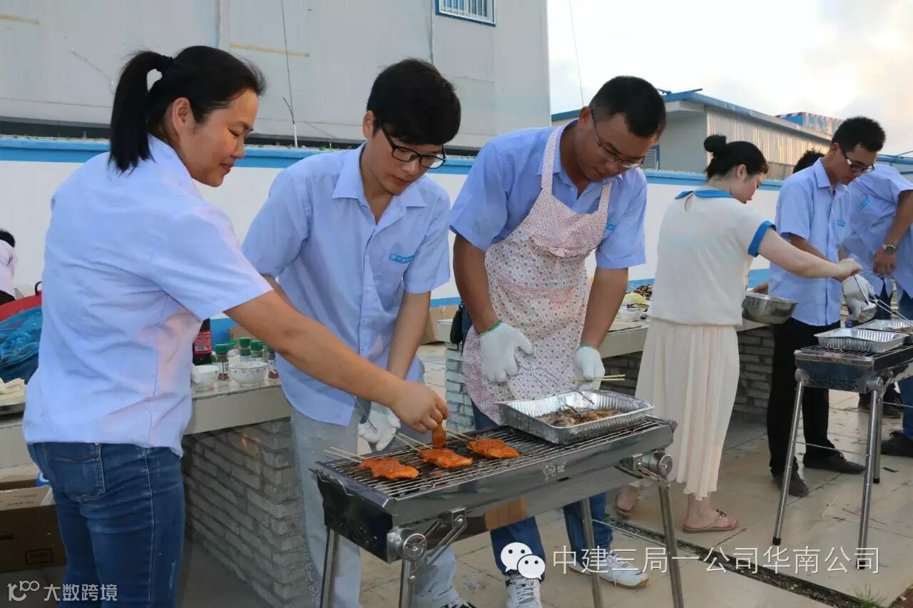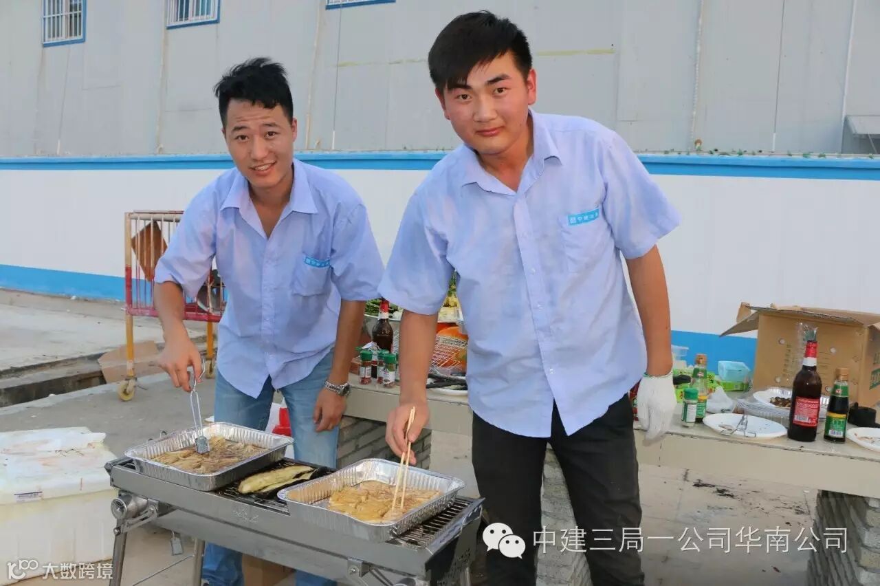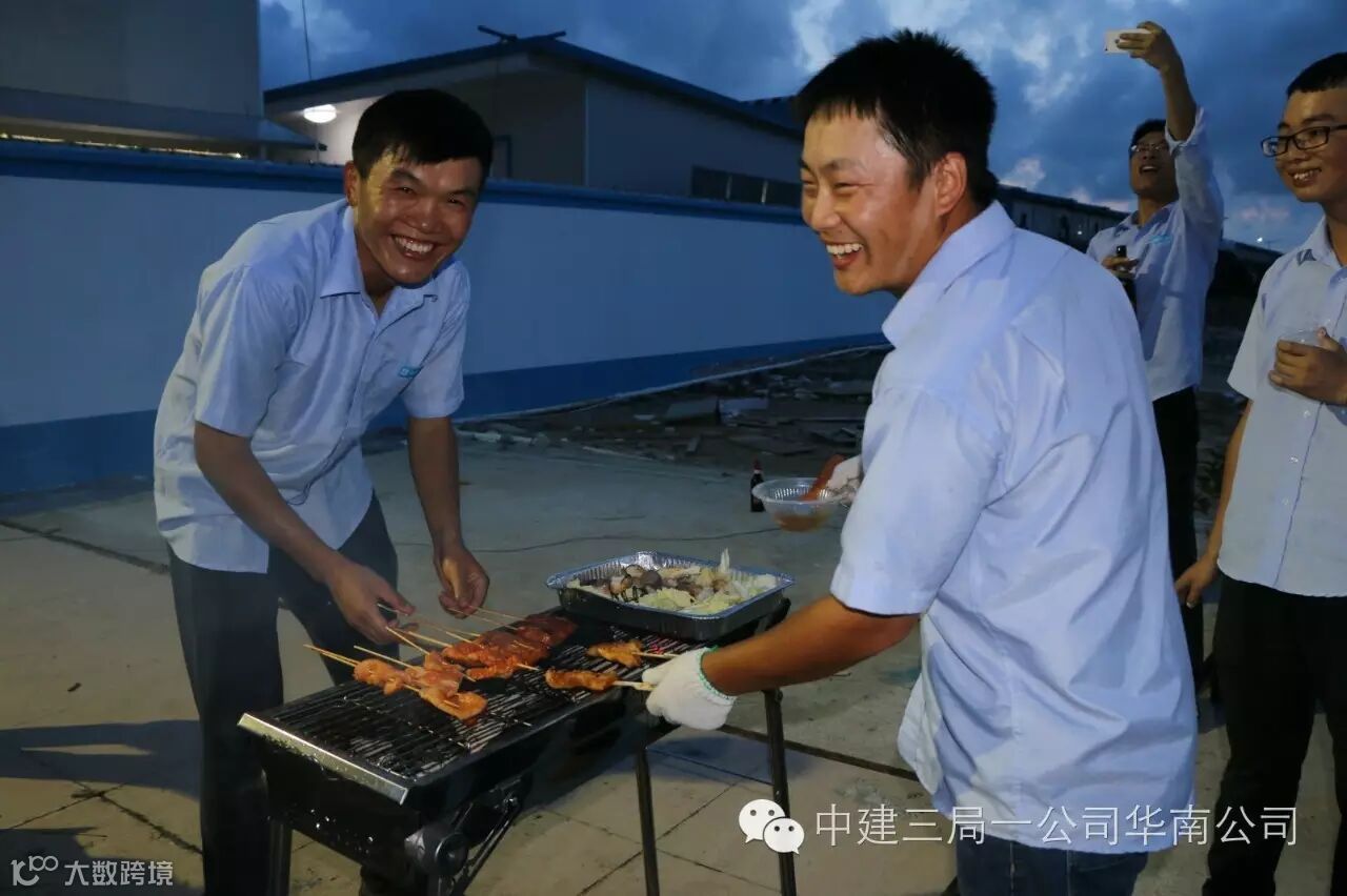 白手套、花围裙、娴熟的调味、艺术的翻转……只见由项目总包各个部门分别负责的5个烧烤炉源源不断地出产着各自的得意之作,再由“吃货”们用托盆送到人群里进行“消化”,而食物被“消化”速度的快慢似乎又显示着谁家的手艺更了得,被“消化”快了的自然是嘴巴翘到眉毛上,继而制作更多可口的美食;而被“消化”慢了的,也是不甘示弱,在烧烤手法上进行改进,而乐呵呵的众人自然是美食不离手了。