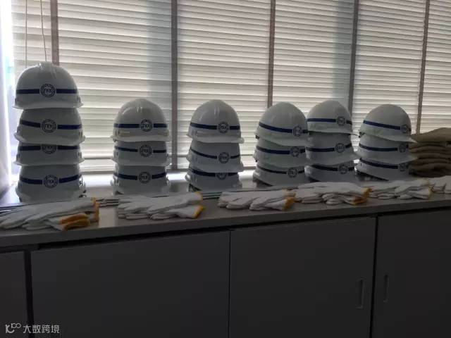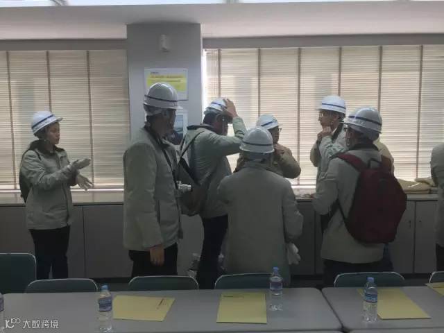 在进入工地之前,考察人员被要求换上统一的工装,并戴上头盔。