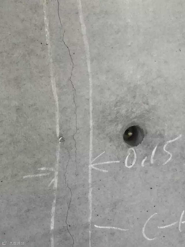 检查过程中发现有结构裂缝,立即进行标识,并作出相应的整改。
