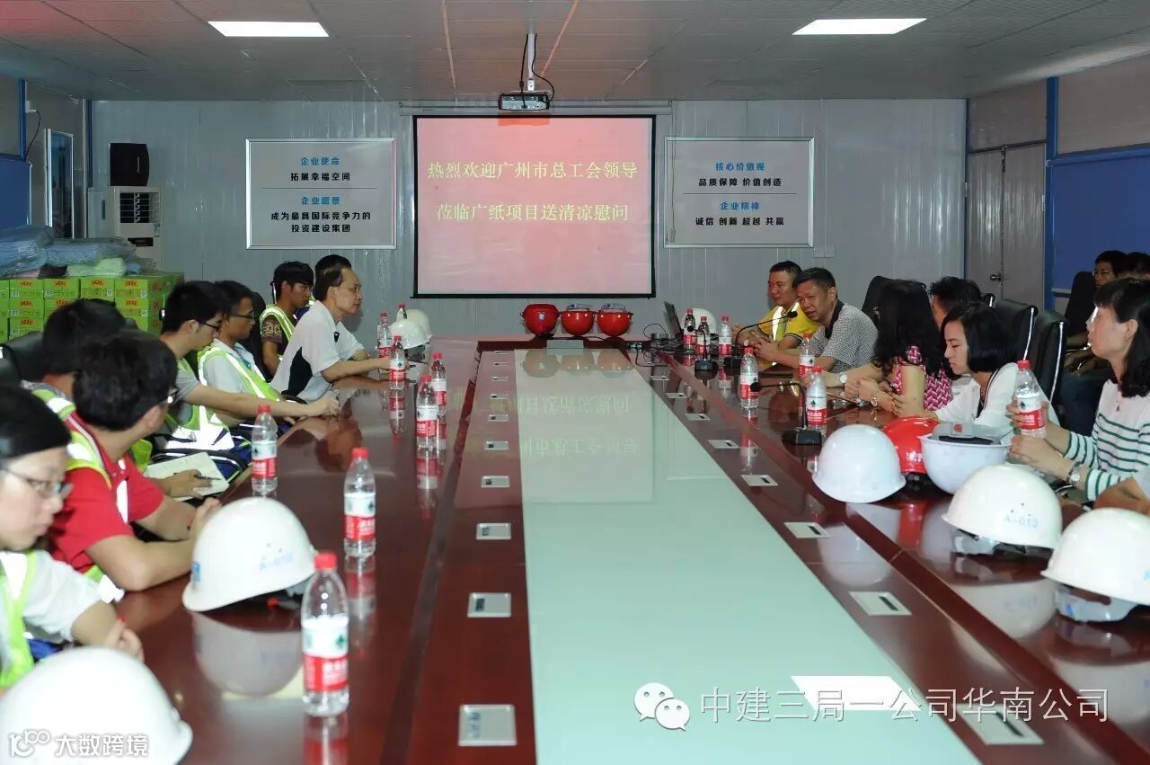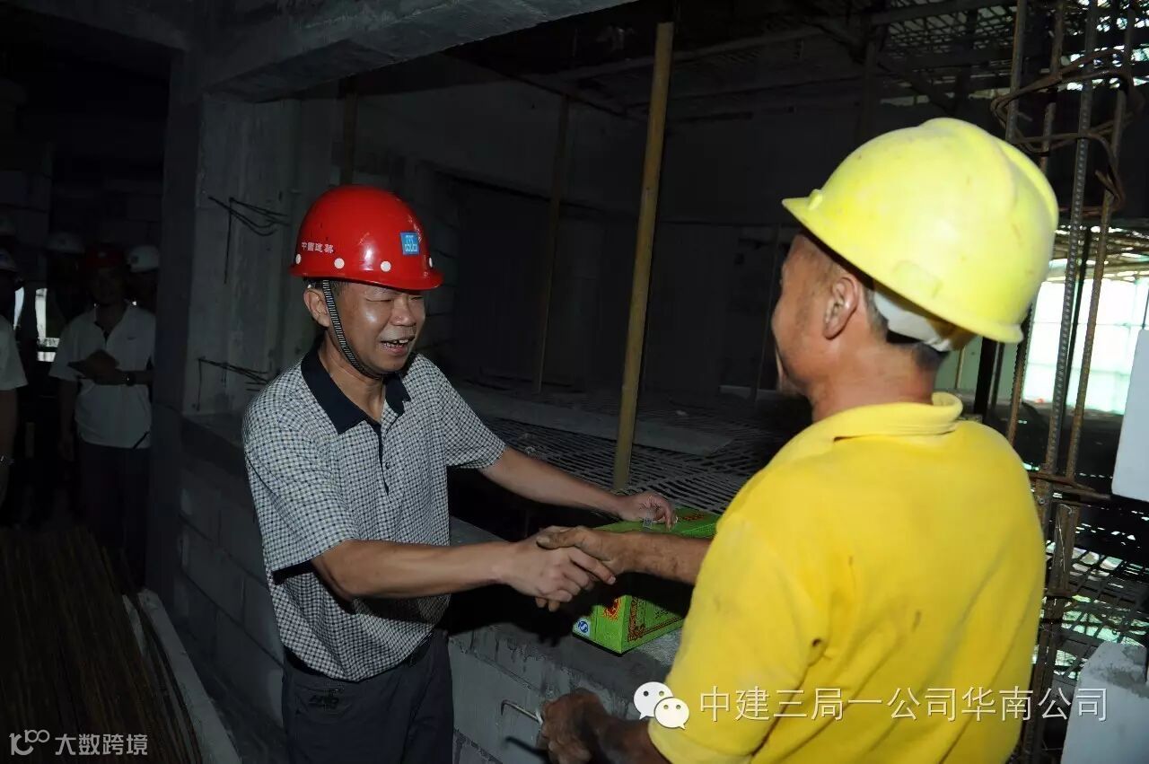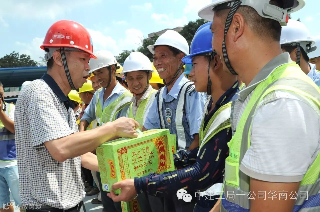 市总工会常务副主席钟诚亲临施工现场,他亲切地询问了工人工资的发放情况、上下班的时间,对目前工作的满意度,并叮嘱他们在高温天气下作业要注意防暑和劳动安全。随后钟主席一行将500箱王老吉和1000条毛巾发放给了现场的工友们,望着平易近人的钟主席,工友们笑开了颜。