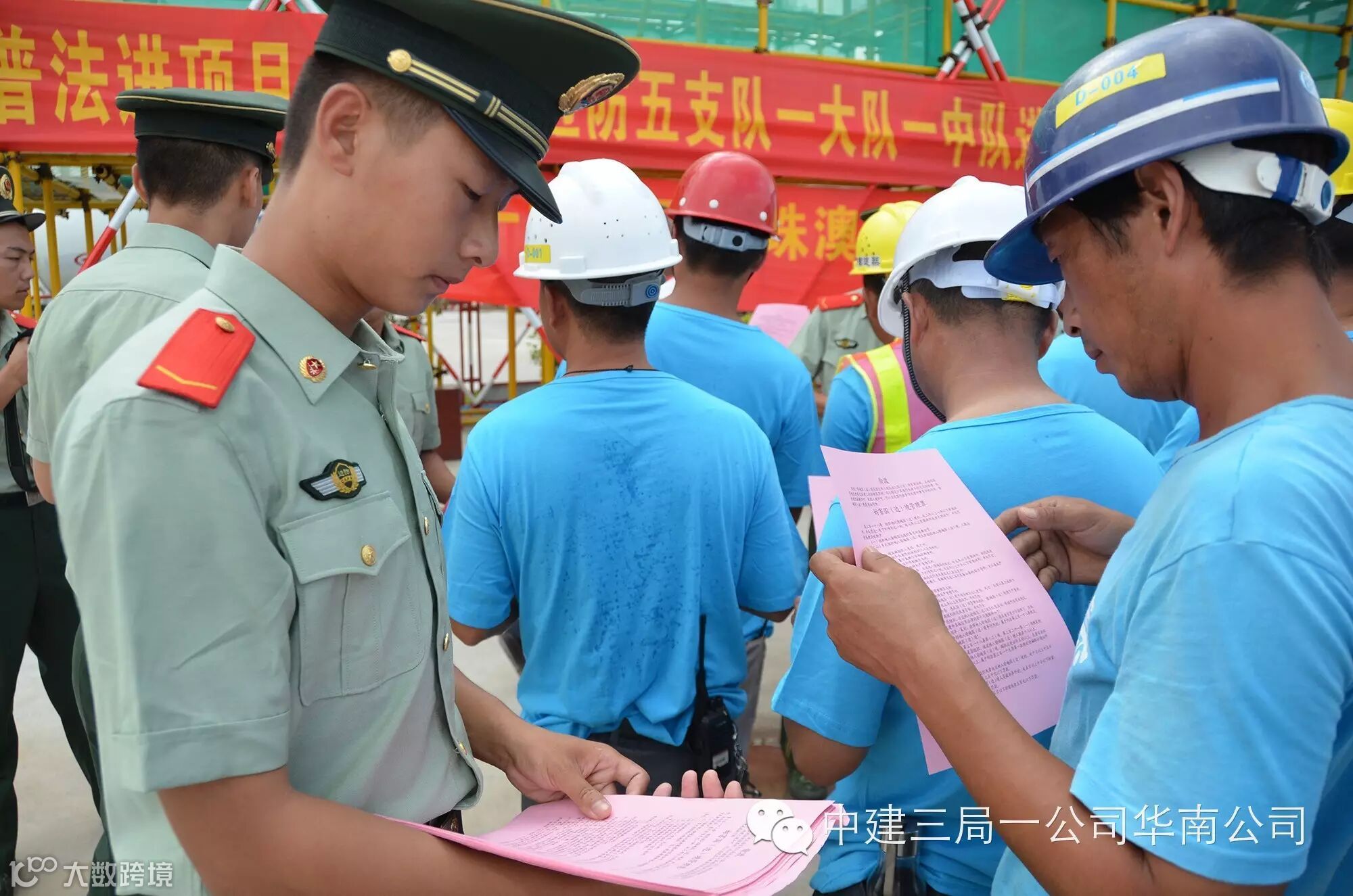 (通讯员 赵伟)为提升农民工法制观念,增强农民工依法维权意识,7月17日,由华南公司承建的港珠澳大桥珠海口岸工程(I标段)项目组织开展以“一桥飞跃港珠澳,普法宣传来送到”为主题的法律宣传活动,特别邀请了珠海市边防武警支队一中队官兵及广东尊仁律师事务所律师到活动现场进行讲解。