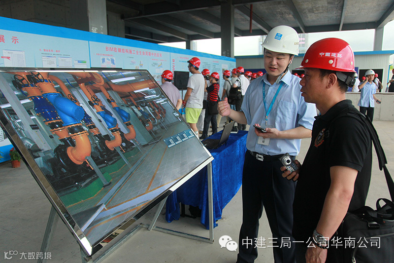 此次观摩会的主题为BIM技术的应用推广,以BIM在阿里巴巴项目的应用价值点作为主线,将BIM在总承包管理体系、进度管理、技术管理、平面管理、商务管理、质量安全管理等多方面的应用经验,以及机电预制化加工、运营维护系统等目前中建三局一公司BIM前沿技术的实际应用经验,通过技术展板展示、实体样板展示、触摸屏点击查阅、视频投影观看、现场专人解说等多种交流方式,全方位、多角度的为观摩人员提供交流平台。
