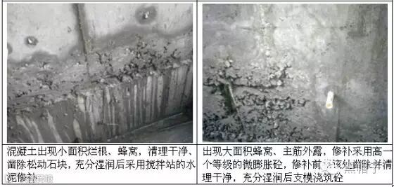 原则上涉及混凝土结构修补的必须由施工总承包单位编制施工方案,监理、项目部审批后按方案执行,本标准中涉及的部分修补方法仅作为参考提供: