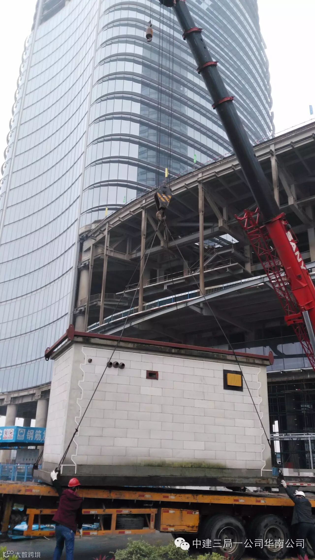 1月16日下午,广州保利琶洲项目可移动质量样板展示区在80t吊车的提升下顺利起吊,搬运至广州金地牛奶厂项目进行第二次“服役”。