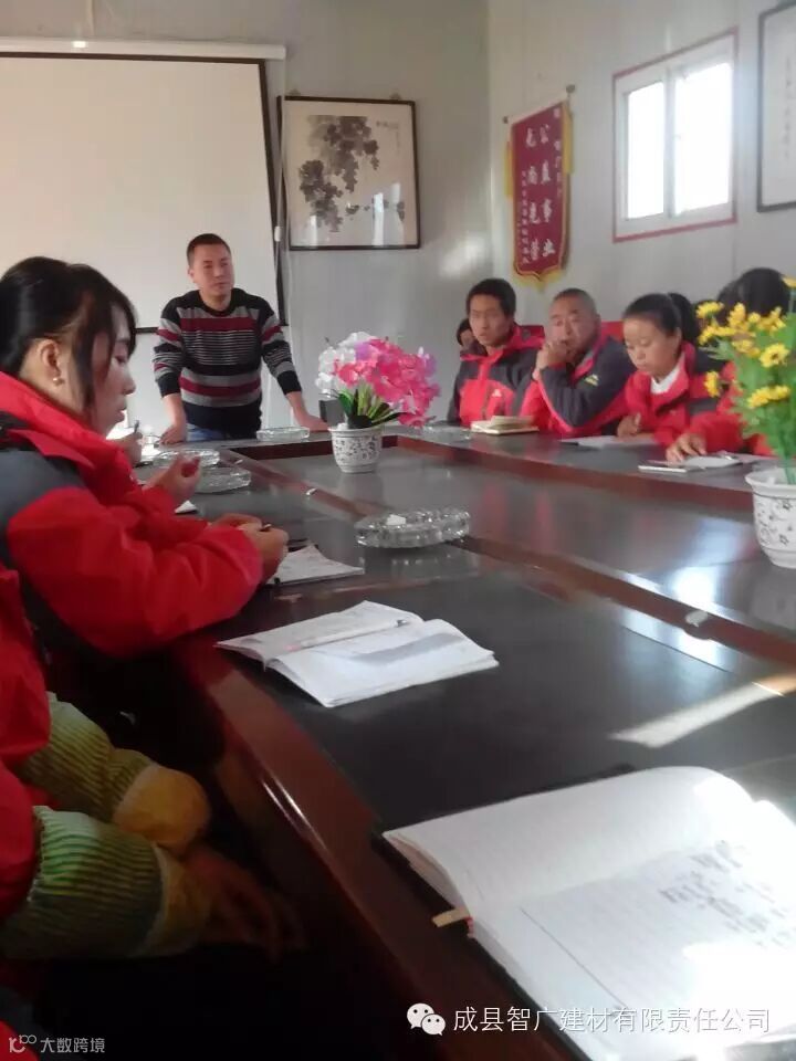成县智广建材有限责任公司为了加深员工对企业文化的认识,公司于2015年12月15日在商砼站组织职工进行学习。张文辉、苏龙强、程亮亮、苏雄强先后讲课,此次课程的内容是以战略执行系统知识为主,其目的是为了提升职工自身综合素质,如何做好一名称职的职工;课程于当天下午结束。这是我公司内部首次举办的员工自己讲,职工相互学习,共同进步的学习促进会。