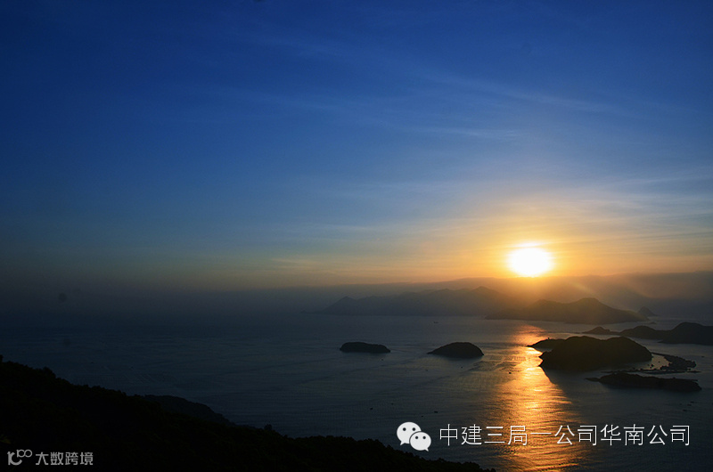 又过半个钟头,绕过一个山亭,越过50来米的土坡,豁然开朗,隐约中,大小岛屿分布在泛着鱼鳞光的海上。终于到达本次欣赏日出的绝佳位置。这里已是空前盛况,百余号从全国各地集结的摄影爱好者,早早占据有利地形,架设好“长枪短炮”,等待5点55分太阳准时升起。