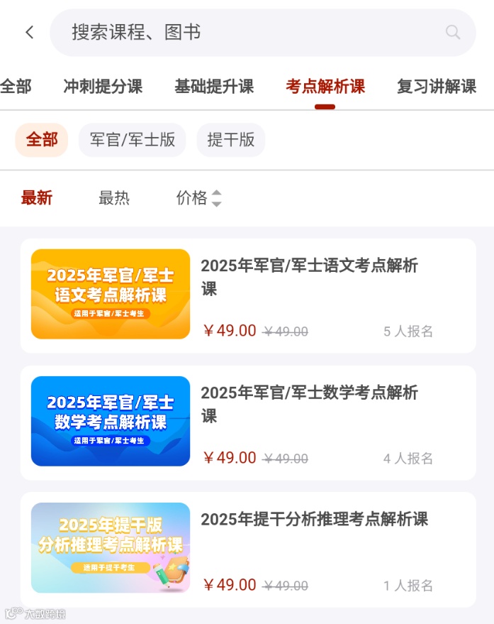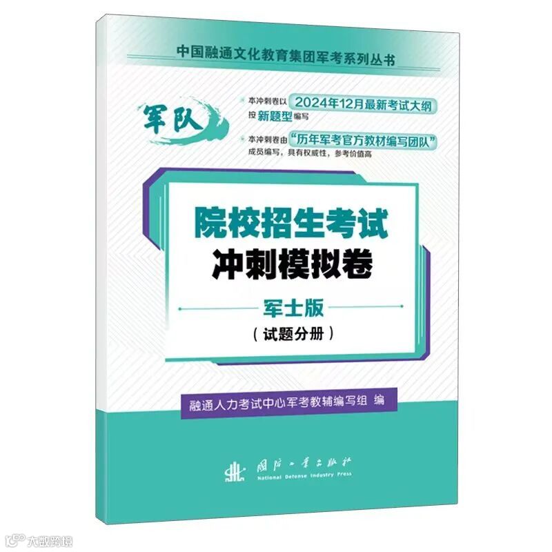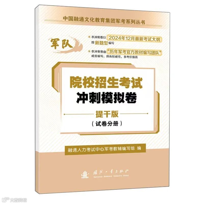 距离2025年军队院校招收士兵学员文化统考及大学毕业生士兵提干文化科目考试开始还有两个月,为助力广大考生把握复习方向,积极高效备考,融通人力公司旗下的融通人力考试中心组织各科权威专家形成军考教辅编写组,编写出版了军考《院校招生考试冲刺模拟卷》并录制上线了考点解析课,为方便大家复习备考,现将各类产品情况向广大考生作简要介绍。
