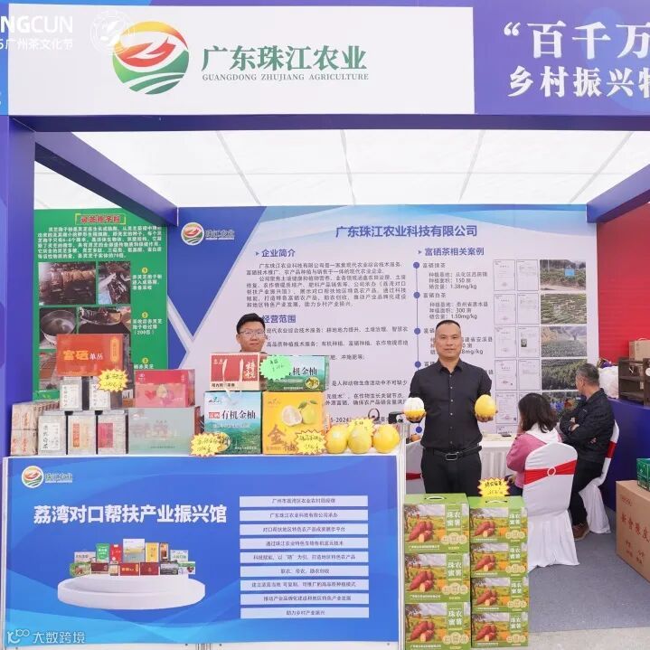 荔湾对口帮扶产业振兴馆是广东珠江农业科技有限公司承办的,对口帮扶地区特色农产品成果展示平台,在为期三天的展会中,珠江农业展位吸引了众多茶友、游客与行业伙伴。我们打造的珠农蜜薯、富硒茶叶、富硒有机金柚等产品,在与众人分享过程中广受好评,现场交流氛围热烈,茶香笑语不断,一杯富硒茶,一颗金柚,一箱蜜薯,连起了珠江农业与万千爱茶人。