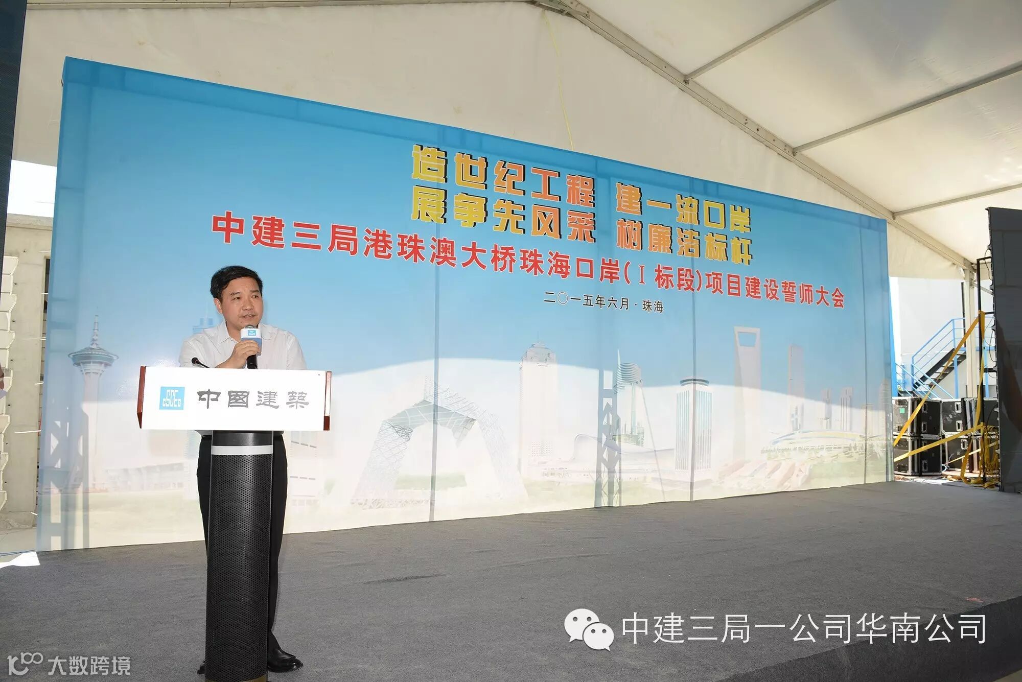 (通讯员 刘娟 李煜 邓毅群)6月16日上午,旌旗猎猎,长空万里,华南公司港珠澳大桥珠海口岸项目在施工现场举办了以“造世纪工程,建一流口岸,展争先风采、树廉洁标杆”为主题的建设誓师大会。珠海市党组成员陈仁福,局总经理易文权,珠海市职能部门、港珠澳大桥主管机构、业主、监理、工程各参建方代表等共计300人参加了此次誓师大会。