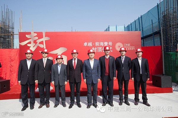 (通讯员 宋磊 董士龙)2015年2月2日,深圳前海首个商务综合体提前83天顺利封顶。前海管理局张备局长、蔺宏副局长、唐绍杰副局长、卓越集团李华主席、李晓平总裁、中建三局市场部总经理龚良庆出席了此次仪式。