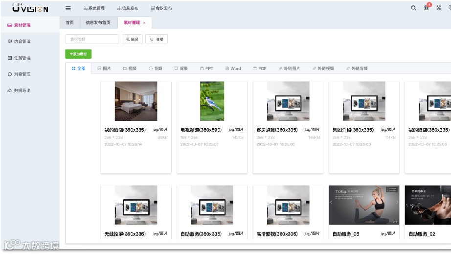 迪威博众(北京)科技有限公司旗下尚视 U+vision品牌,专注各类显示设备的集中管理,基于信息发布管理系统、会议预订管理系统、智慧电视交互系统、分诊排队叫号系统四大自研产品线,打造高附加值的创新屏幕,为酒店、学校、文旅、医疗、司法、金融等行业提供一站式解决方案。