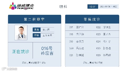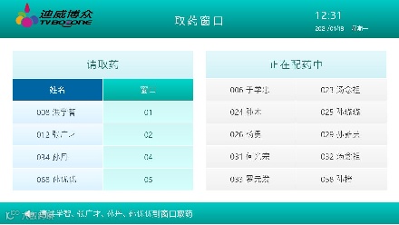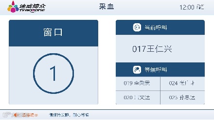 候诊区,55寸一体机,用于各科室、诊室排队信息显示;