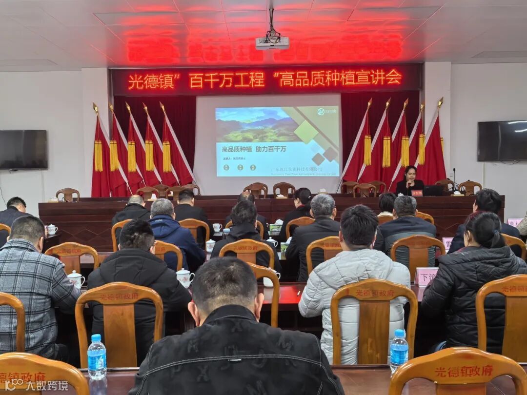 人勤春来早,为了深入贯彻省市高质量发展大会精神,2月27日,广州市驻梅州市大埔县光德镇帮镇扶村工作队(以下简称“驻光德镇工作队”)组织召开光德镇“百千万工程”高品质种植宣讲会,邀请广东珠江农业科技有限公司(以下简称“珠江农业”技术专家进行专业技术培训,助推相关产业提质增效,助力镇域经济高质量发展。