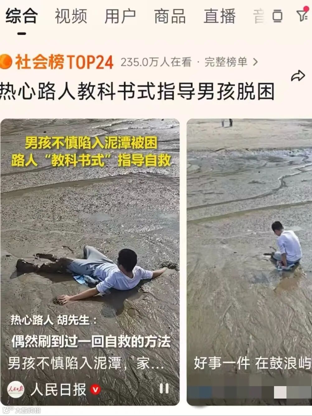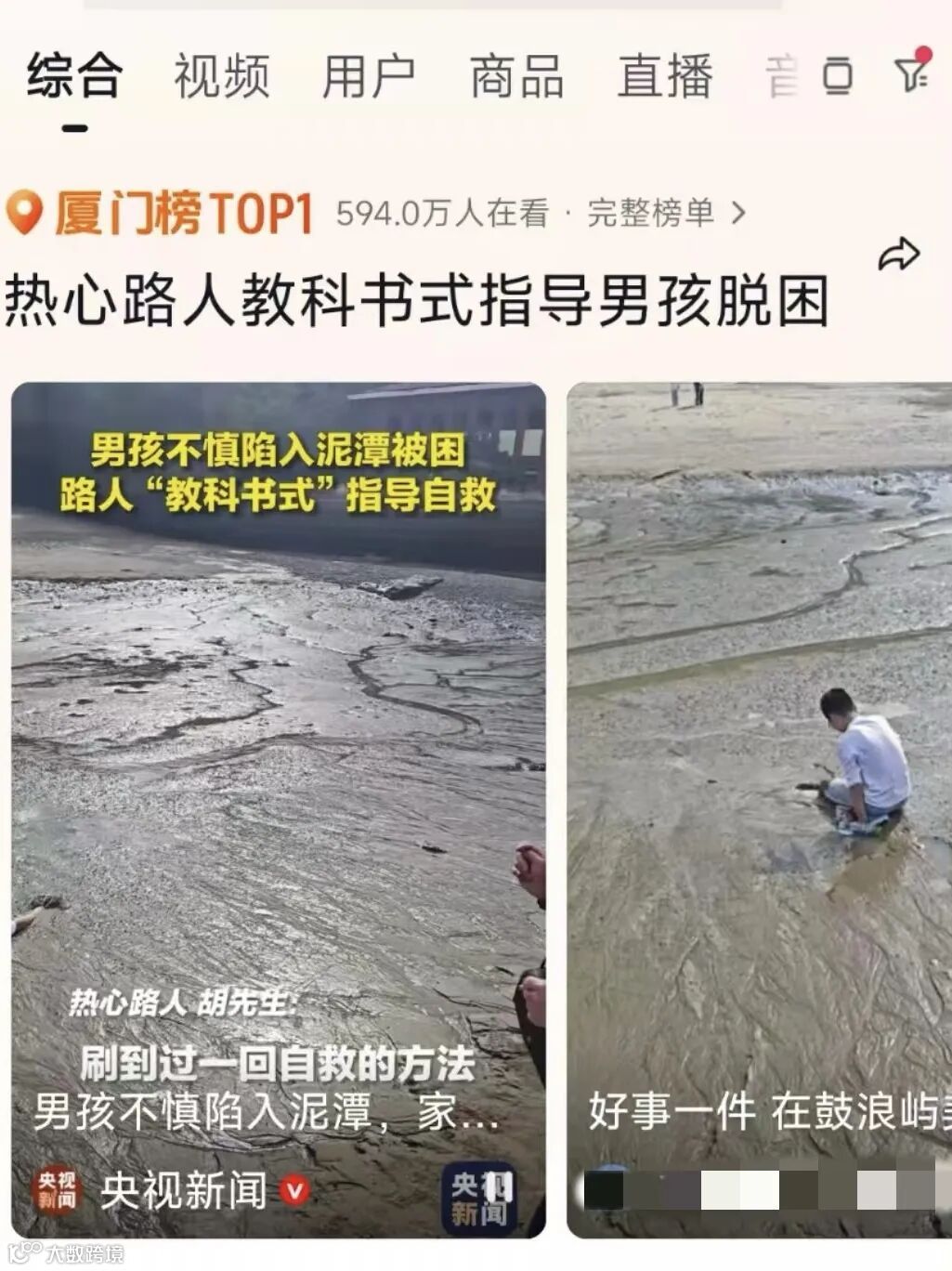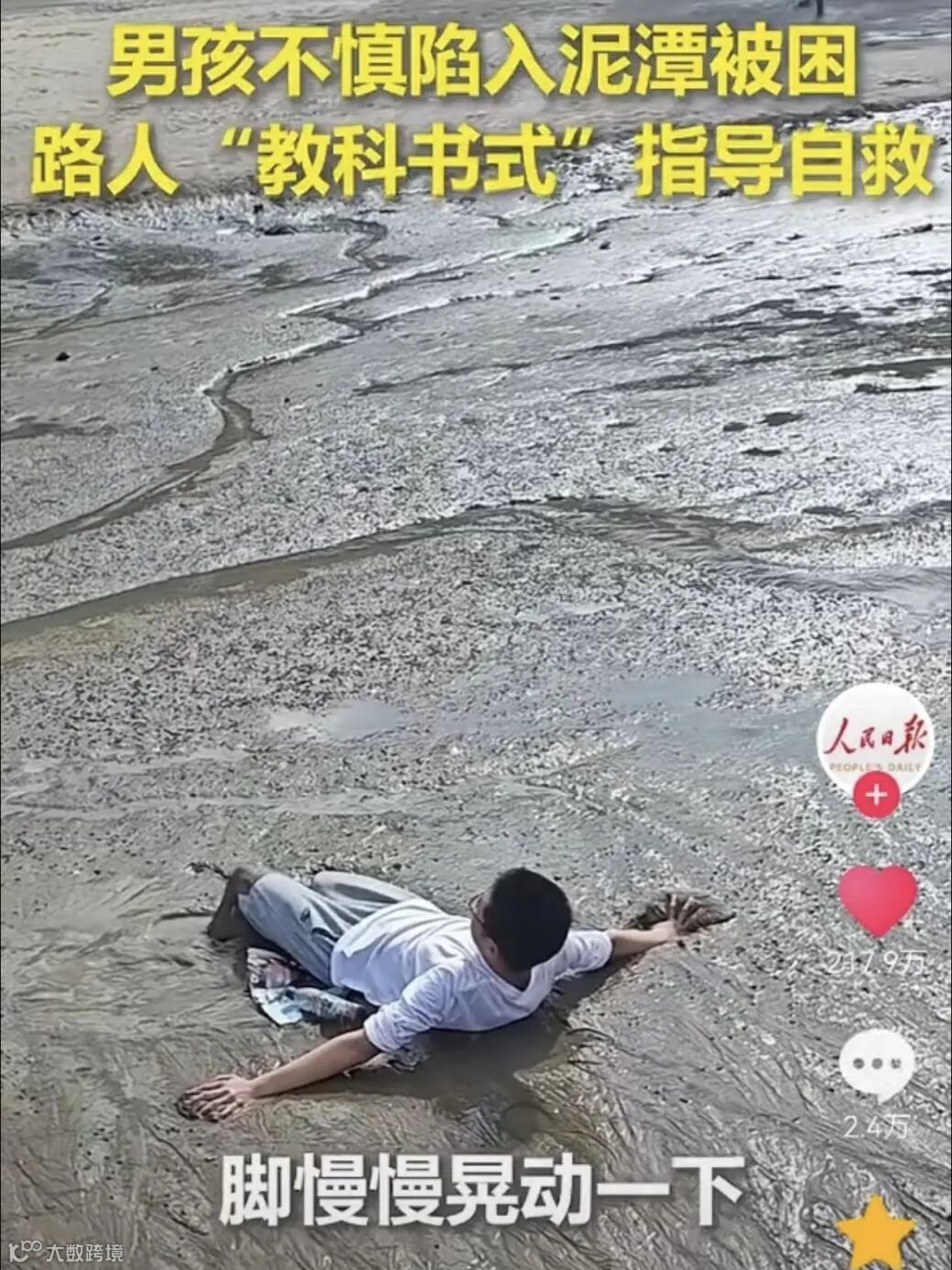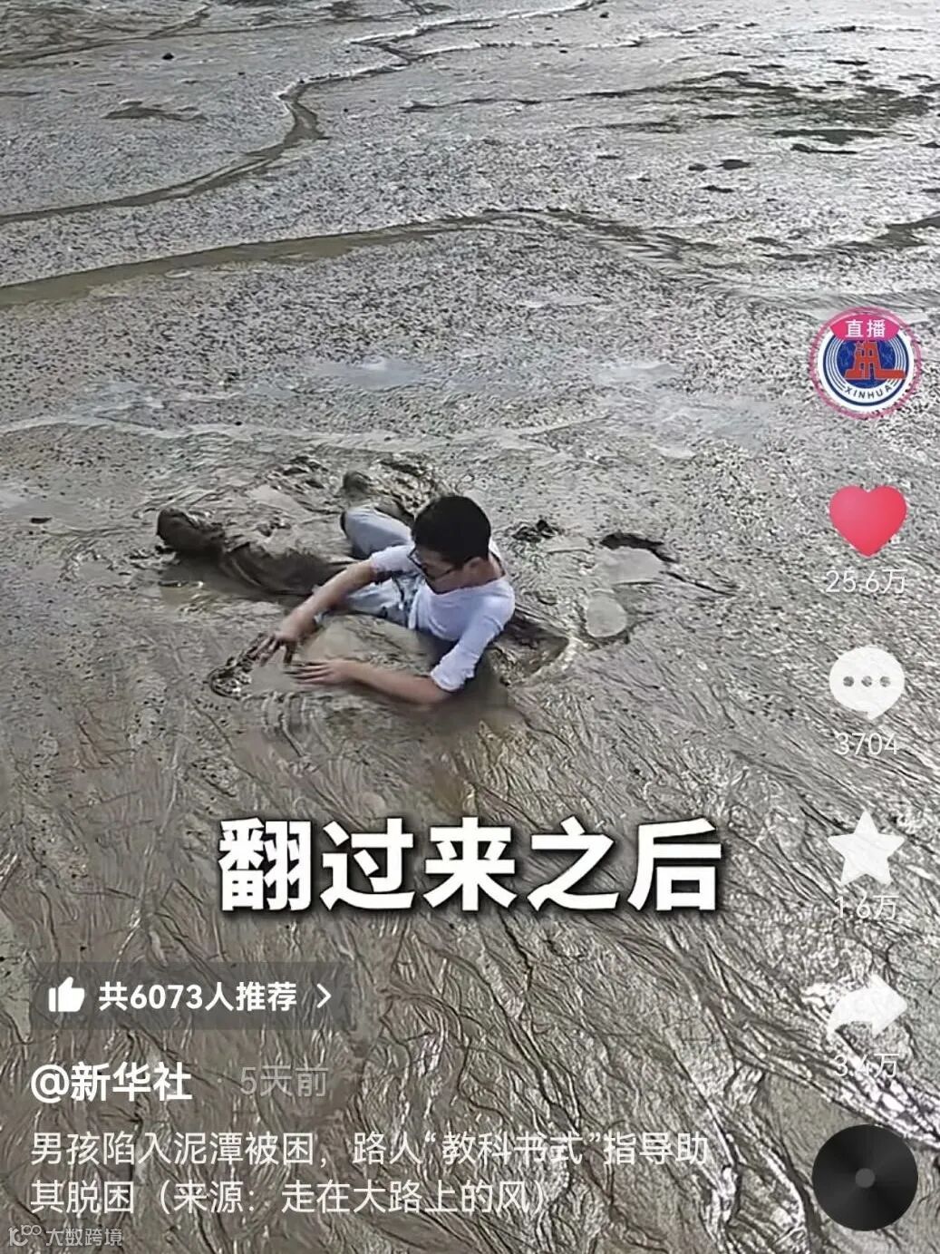 一则题为“男孩不慎陷入泥潭被困