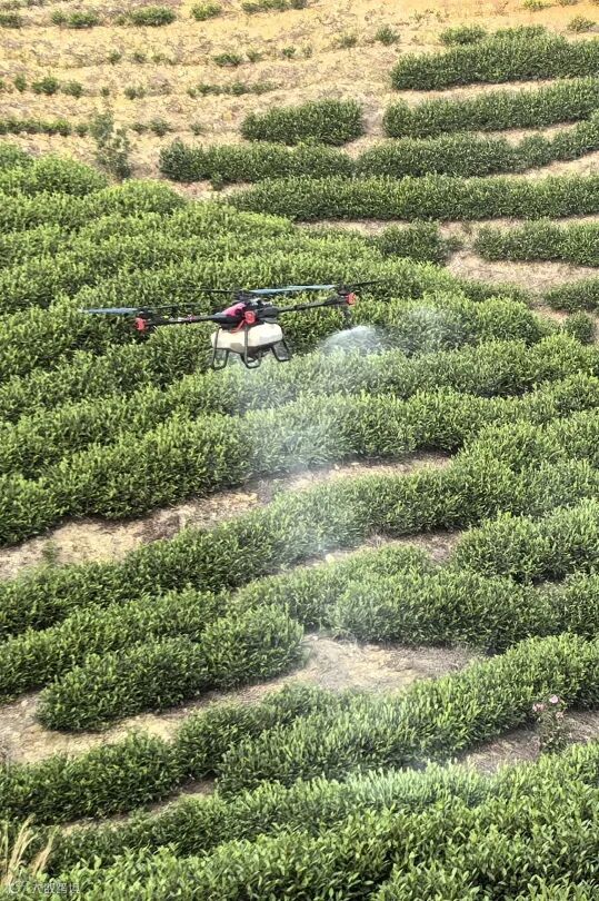 起飞、悬停、飞行、喷洒……近日,惠水县雅水镇生态白茶产业园种植基地上空,技术人员正操作一架装载着富硒叶面肥的植保无人机平稳地穿梭在茶垄间,旋翼产生的气流将水肥均匀地喷洒在茶叶上,分别于2025年2月28日和3月11日,完成300亩茶园的2次补硒作业。