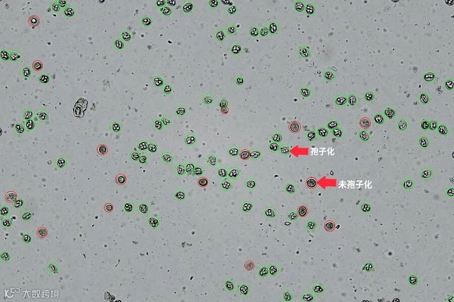 萌薇SmartCell 900通过人工智能AI算法学习,不仅能够准确识别球虫卵囊,还可以精确区分孢子化和未孢子化卵囊。球虫卵囊的准确计数将对球虫病的诊断提供重要参考意义。