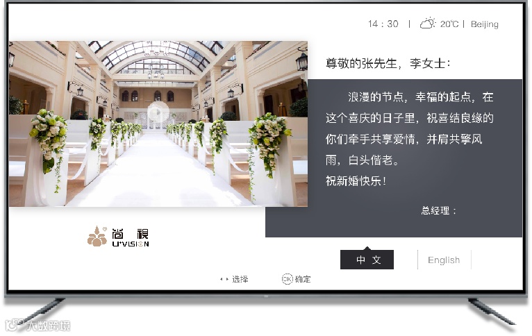 “所见即所得”的可视化编辑系统,操作边界,让酒店能够更充分地利用电视大屏展示酒店的设计、运营理念。