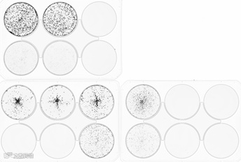图3. 使用Sapphire多光谱激光成像系统进行克隆增殖实验,扫描6孔板获得的图像结果。