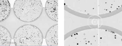 图4. 使用Sapphire多光谱激光成像系统进行克隆增殖实验,扫描6孔板获得的图像结果放大后的局部结果。