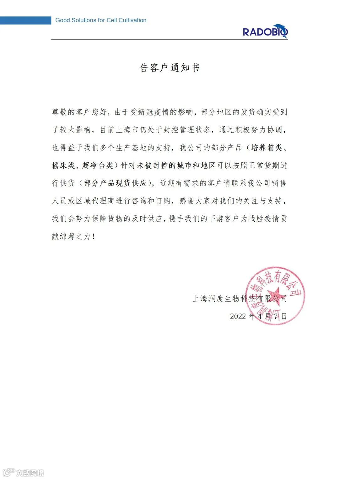 力排万难 | 上海润度生物继续保持正常供货