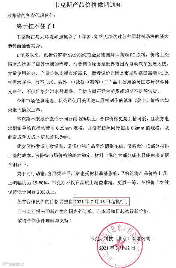 韦克斯产品将于下个月15号,价格就要上调啦,