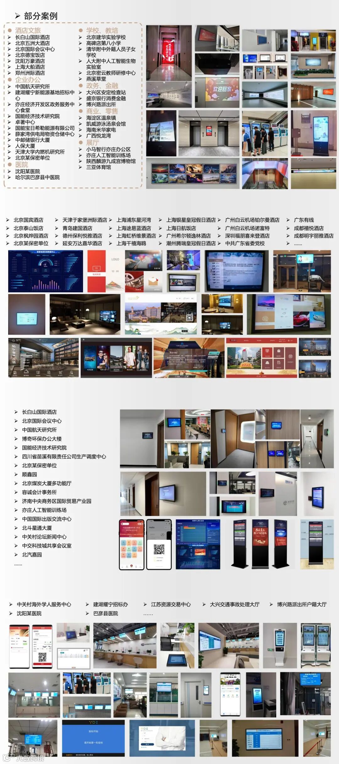 从酒店到医院、学校、办公楼、政务金融、展厅、智慧园区、商业零售等,各行各业都能看到迪威博众的身影。