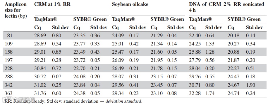 ▲表1:使用TaqMan法对不同长度扩增子的qPCR检测