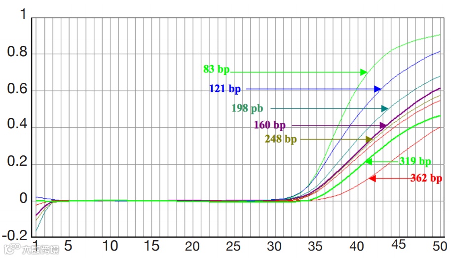 ▲图2:不同长度扩增子的扩增曲线