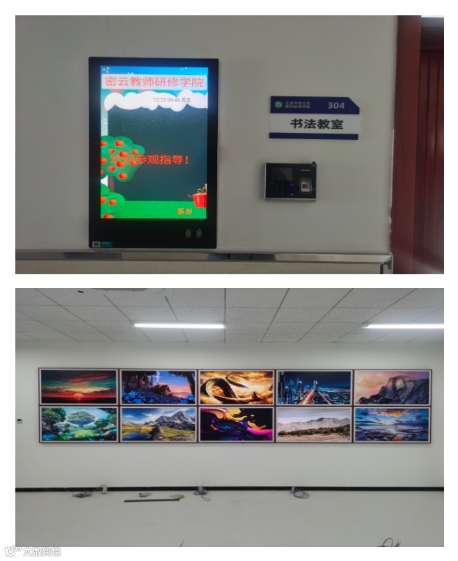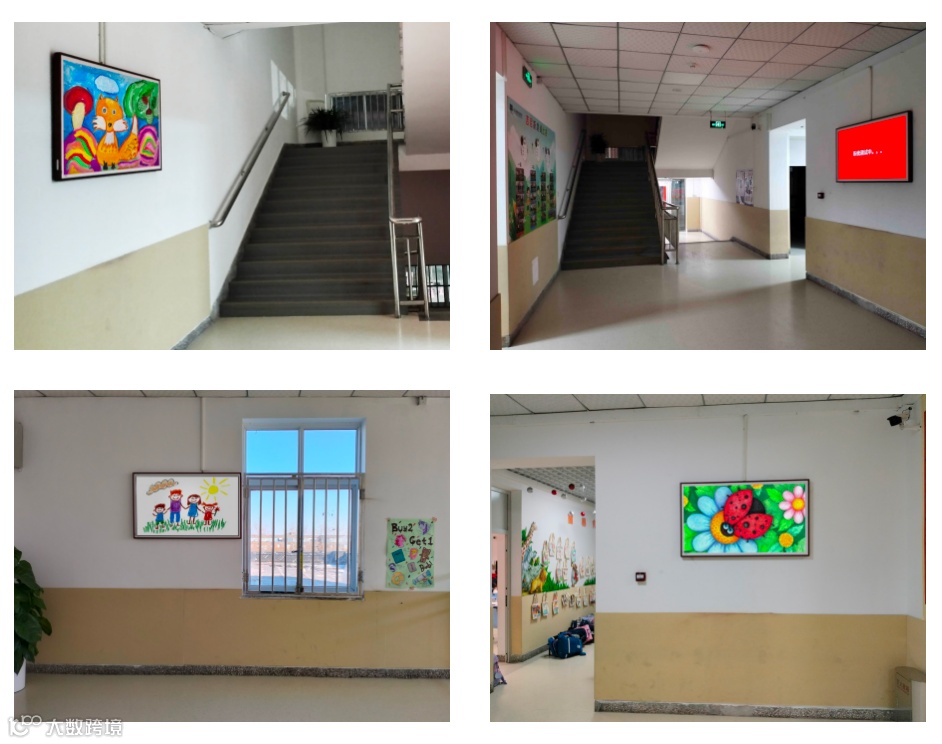 在学校教学楼走廊楼梯口等人流密集位置,部署搭载了尚视信息发布管理系统的信息发布一体机,采用拼接安装方式,用于学校教师、教务人员发布通知公告、学生作品、名画赏析、小知识、各类管理规定等信息。