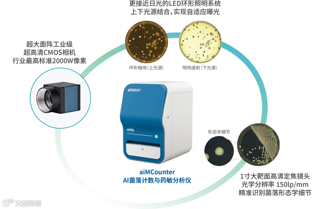 • AI自适应调节:无需任何人工干预及参数调节,自动识别菌落区域,智能高速调节曝光。自适应不同培养基及菌落形态。