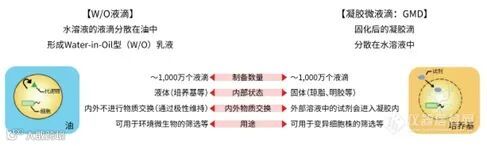 液滴是分散在油溶液中直径为数十μm的水滴,油中水滴为“液滴”的一种,单个微小液滴可作为微生物·细胞的培养系统。微液滴技术能轻松实现单细胞检测及超百万样本的同时测定,是热门的高通量筛选(HTS,high throughout screening) 技术,目前已广泛应用于基因检测等领域。
