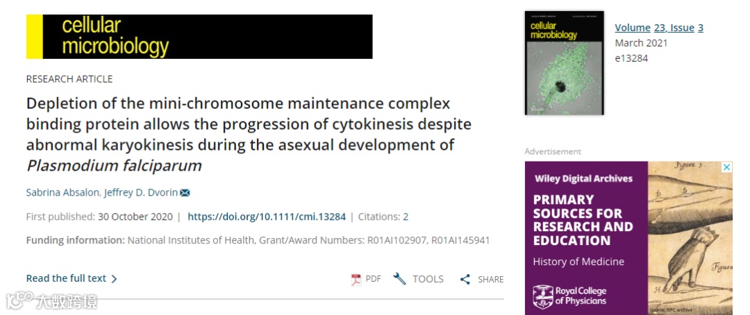 迄今为止,还没有发现调节疟原虫分裂的细胞周期检查点的分裂模式。由于疟原虫细胞分裂的特殊性,了解疟原虫中驱动和调节分裂过程的分子机制可以帮助揭示治疗疟疾的新靶点。本次推荐的文章《Depletion of the mini-chromosome maintenance complex binding protein allows the progression of cytokinesis despite abnormal karyokinesis during the asexual development of Plasmodium falciparum》找到了一个与疟原虫分裂相关的蛋白复合物,该蛋白的缺失将导致疟原虫细胞分裂异常。