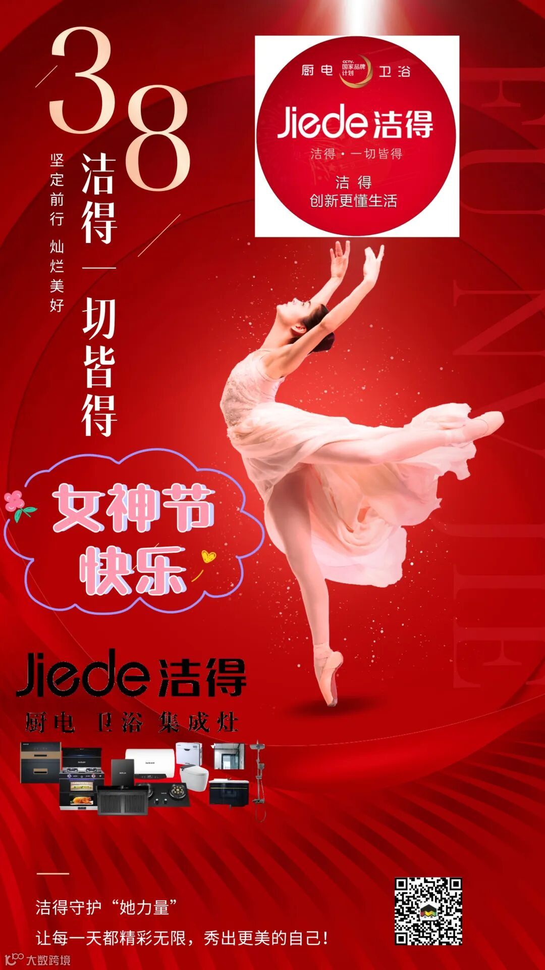 在这个微风轻拂、繁花渐开的三月,全世界都将目光聚焦于一个特别的群体——女性,共同庆祝属于她们的节日:三八妇女节。女性,这一世间最璀璨的星辰,她们用柔弱的双肩扛起生活的重担,在职场上冲锋陷阵,是披荆斩棘的女战士;于家庭中精心呵护,是温暖港湾的守护人。她们以坚韧诠释生命的厚度,用温柔晕染岁月的温度,每一位女性都绽放着独一无二、动人心弦的光芒,值得这世间所有的美好相待。而洁得厨电卫浴集成灶,也渴望在这个特殊的日子里,为女性朋友们的生活添上一抹亮色,开启全新舒适体验。