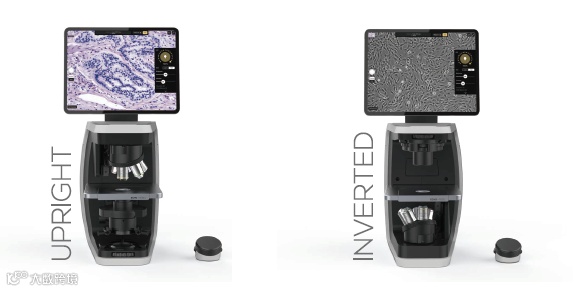 REBEL 2 IN 1正置/倒置Hybrid显微镜兼具正置和倒置显微镜的功能,方便小巧,一机多能,可以非常便利地通过旋转实现正倒置配置的切换;以先进的iPad Pro替代了传统目镜设计,进行操控,观察,传输,采集图像和管理,同时基于iOS的Echo app,使软件操作更加人性化。