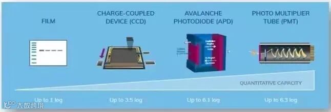 ☑ 唯一的3种检测器设计:PMT,APDs和CCD检测器,PMT检测器用于蓝色荧光检测和磷屏成像;3个独立的APD检测器用于绿色、红色荧光检测和双近红外荧光检测,高分辨CCD用于高灵敏化学发光检测。