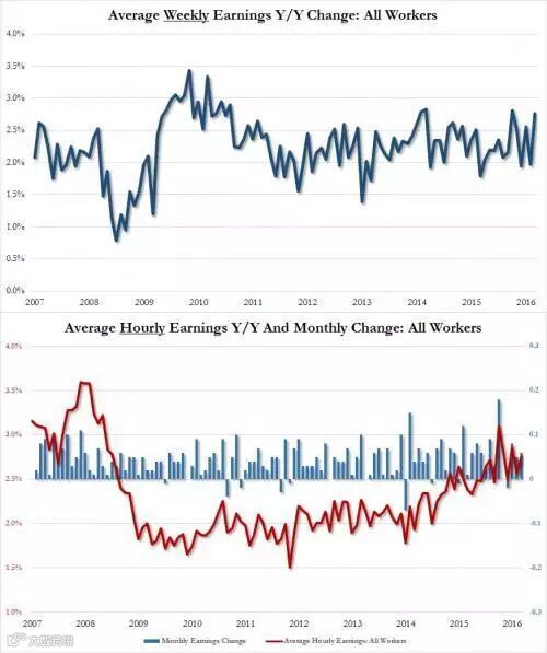 美国2月平均每小时工资环比0.2%,不及预期的0.3%,令人失望。