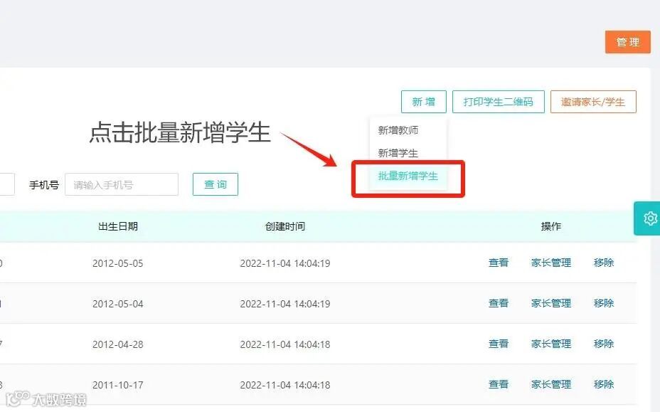 也可以批量录入学生信息,点击【新增】-【批量新增学生】跳转到批量新增学生页面