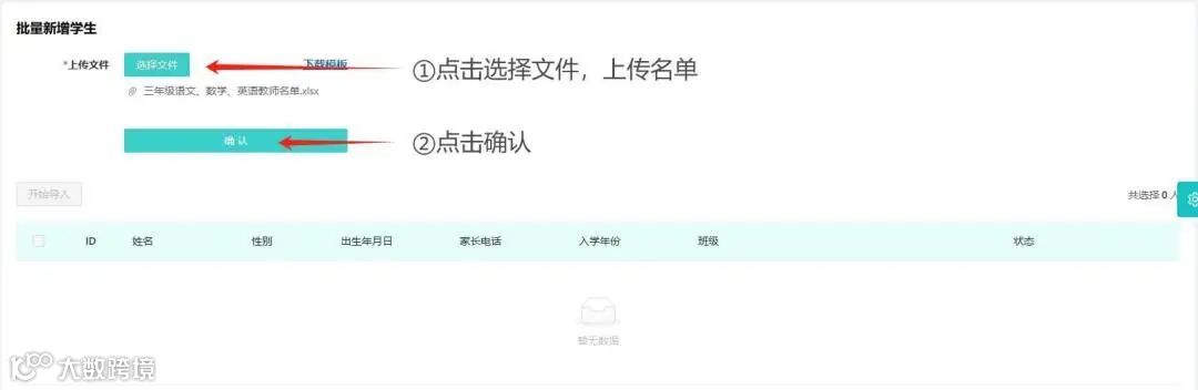 点击【选择文件】上传学生名单