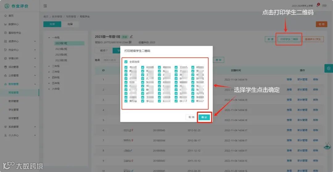 点击右侧【打印学生二维码】按钮可下载本班学生二维码以供打印