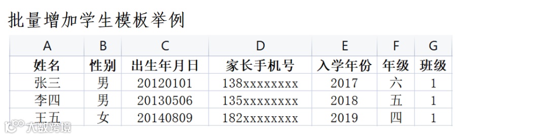 学生信息模板Excel文件内容填写如图所示