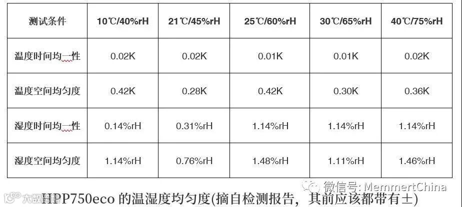 在实际应用中比较关注的温度湿度稳定性测试中,Memmert产品的表现同样惊艳,如上表所示,对比法规上温度±2℃,相对湿度±5%rH的最大可允许偏差,可以看出Memmert下一代Peltier箱体测试数据同样无与伦比,这是Memmert几十年来始终如一孜孜以求的精益求精成果展现。