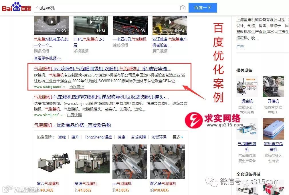 气泡膜机、PVC吹膜机、气泡膜制袋机等关键词均在百度首页。