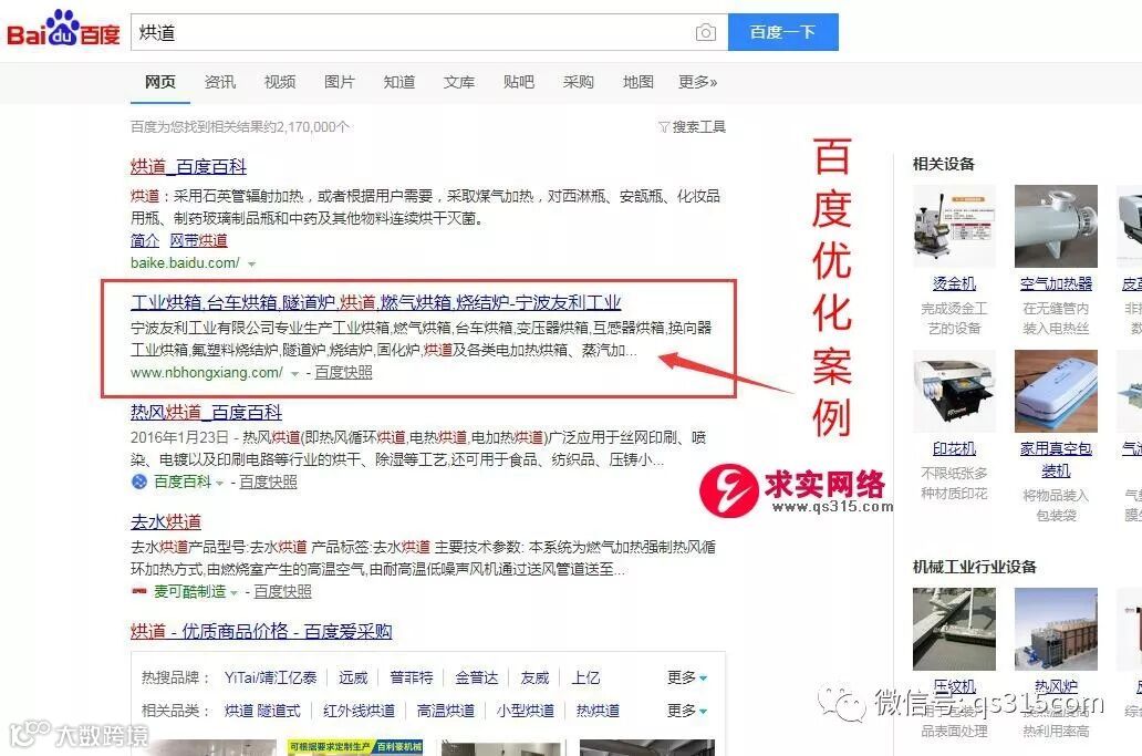 烘道、燃气烘箱等关键词均在百度首页。