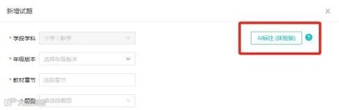 点击右上角【AI标注】,为用户智能填写答案、解析、知识点以及核心素养,最后点击【保存】即完成整个新增流程