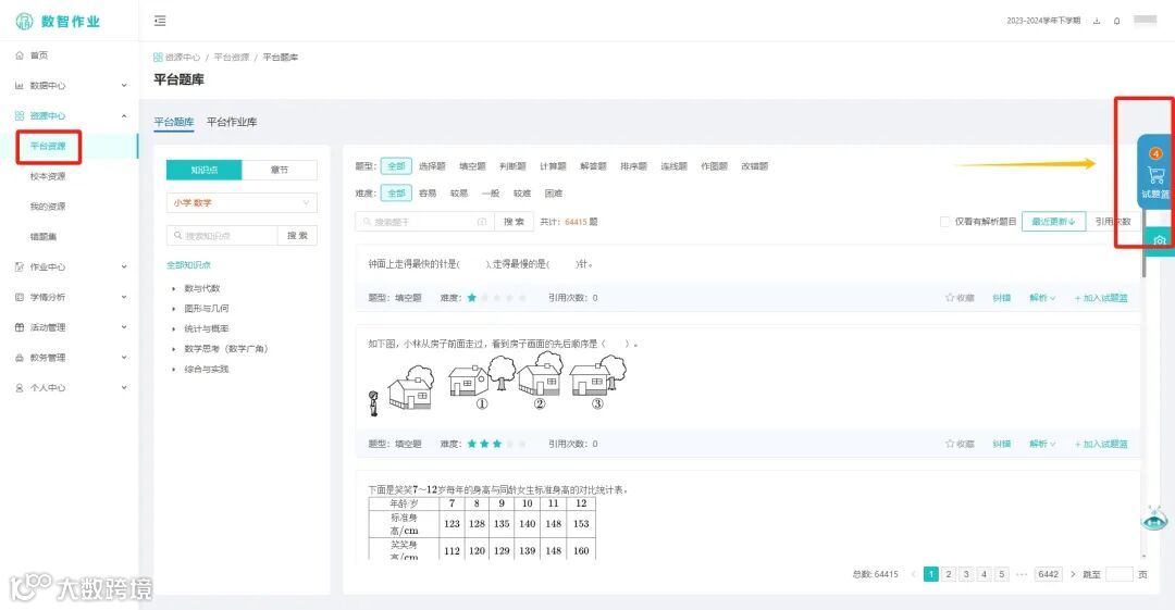 点击【资源中心】-【平台资源】-【试题篮】