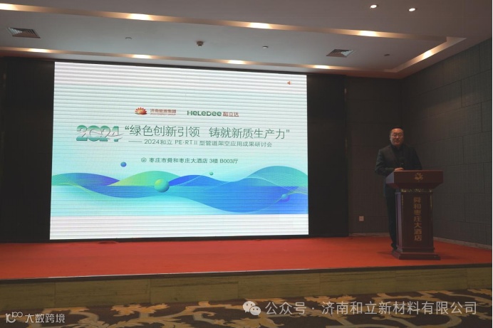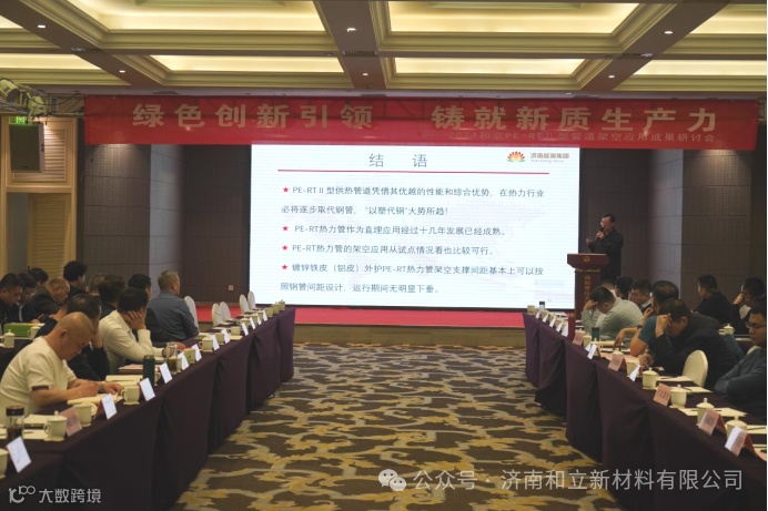 2024年3月19日,由济南和立新材料有限公司主办、山东惠众民生发展集团有限公司、枣庄市中区热力有限公司承办、北京松田程科技有限公司、飞特泰克(江阴)科技有限公司协办的PE-RT II型管道架空应用成果研讨会在枣庄召开。本次会议围绕PE-RTⅡ型管道架空领域的研发、生产、应用等方面展开深入研讨,旨在促进该行业的技术创新和产业升级。来自国内各地热力单位近百位代表参加了会议,原济南热力集团有限公司、济南能源投资控股集团有限公司党委书记、董事长陈福仲,济南能源投资控股集团有限公司党委委员、副总经理齐剑昆出席本次会议。