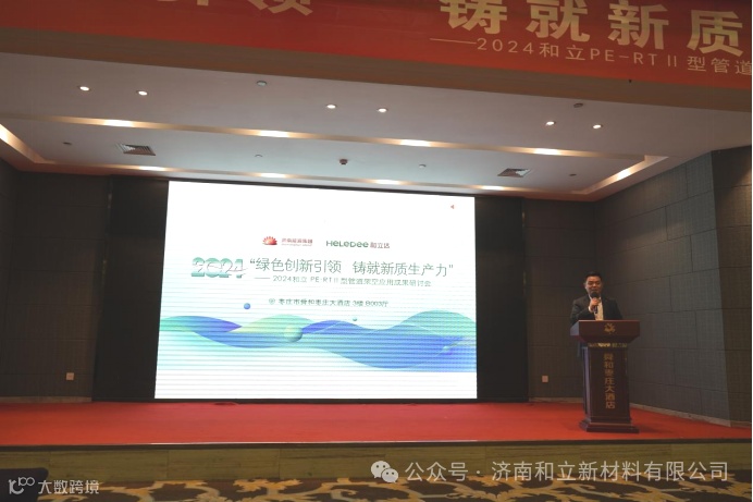 济南和立新材料有限公司总经理张峰发表讲话,并指出,推动管道行业质量发展转型,创新是行业持续发展的动力,绿色是行业活力发展的趋势。此次大会是为行业同仁搭建交流合作,共谋发展的平台,也是PE-RT II型管道架空领域未来发展的重要方向。希望大家进行友好交流,探讨紧密合作方式,相互支持,加强协调,深入合作,共同促进PE-RT II型管道架空领域应用技术的未来发展!