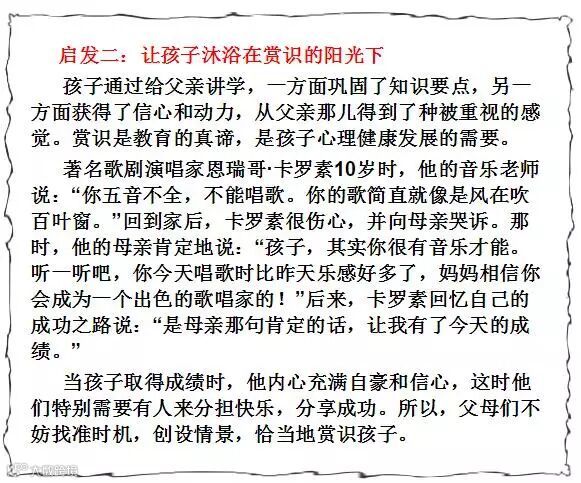 自古以来,父母都是孩子的第一任导师,也是孩子人生中最重要的老师。父母对孩子影响是潜移默化的,是言传身教的。在从事教育工作的这些年,我发现,很多时候一对贫穷的父母会教育出一个优秀的孩子,而成功的父母反而会教育出一个“贫穷”的孩子;所以,孩子的成功与父母的成功与否关系不大,而是与父母的教育方式密切相关。